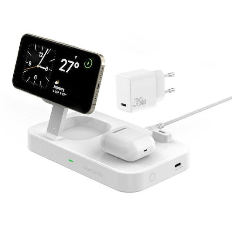 4Smarts Ασύρματος Φορτιστής Qi2 και Καλώδιο USB-C 30W Λευκός (540998) (540998)