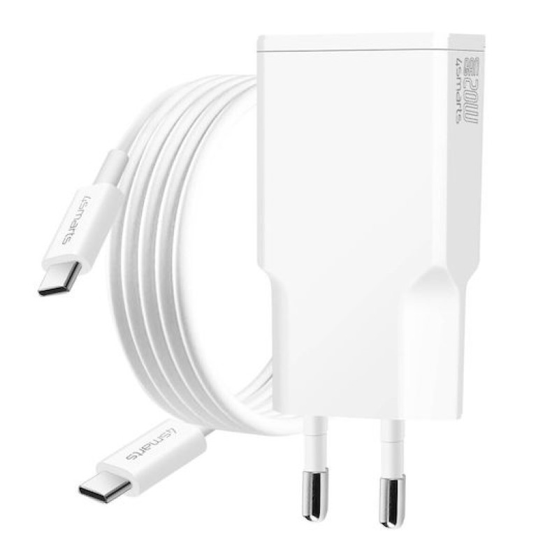 4Smarts Φορτιστής GaN με Θύρα USB-C και Καλώδιο USB-C - USB-C 20W Λευκός (541121) (541121)