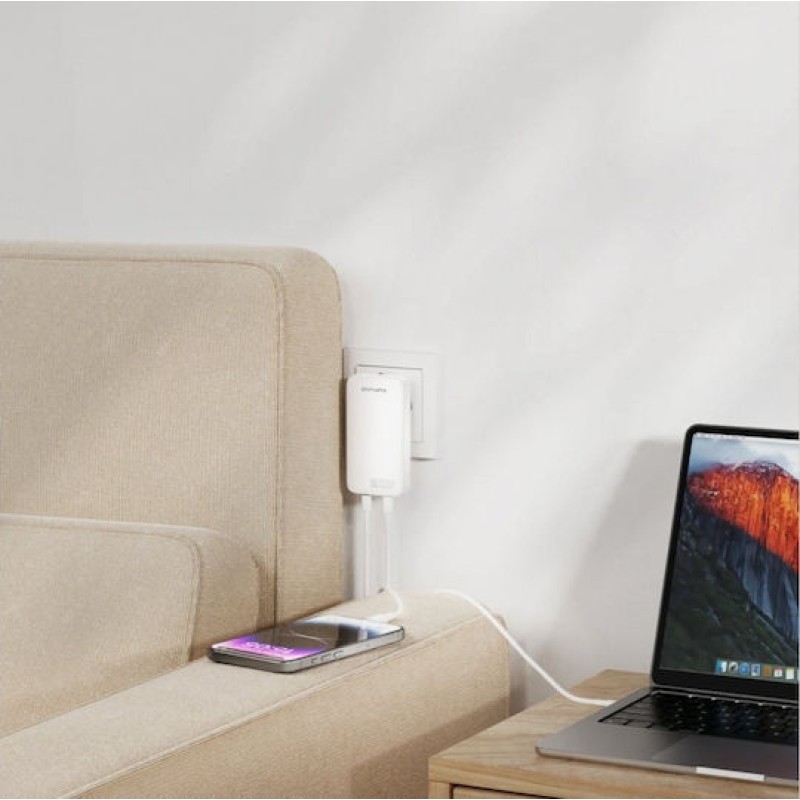 4Smarts Φορτιστής Χωρίς Καλώδιο GaN με 2 Θύρες USB-C 65W Power Delivery Λευκός (FlatPlug Slim) (542065)
