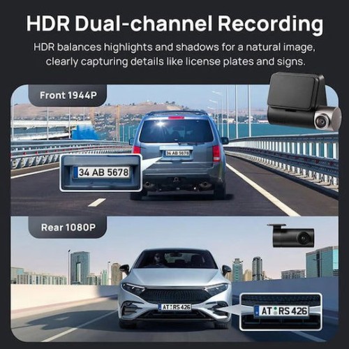 70Mai Σετ Κάμερα DVR Αυτοκινήτου 1080P με Οθόνη 2" GPS & Κάμερα Οπισθοπορείας (A510-1)