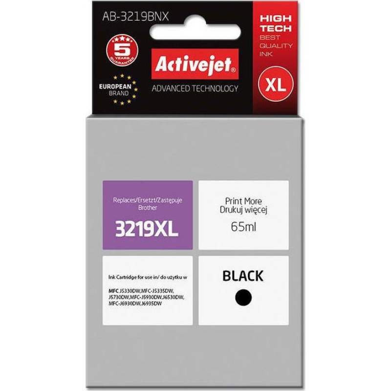 Active Jet Συμβατό Μελάνι Εκτυπωτή InkJet Brother LC-3219BK 65ml Μαύρο (AB-3219BNX)