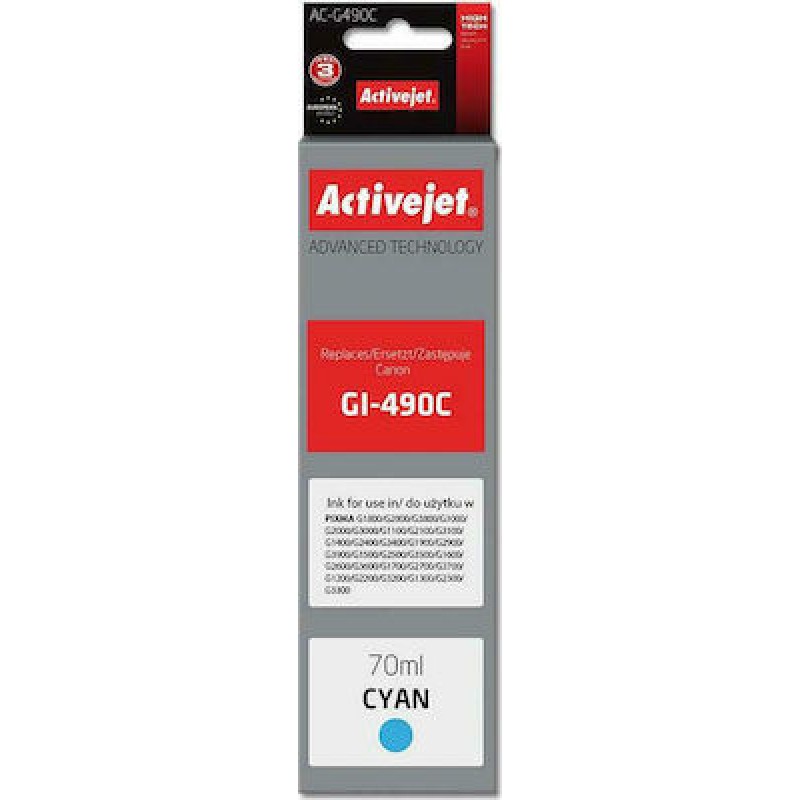 Active Jet Συμβατό Μελάνι Εκτυπωτή InkJet Canon GI-490C 70ml Κυανό (AC-G490C)