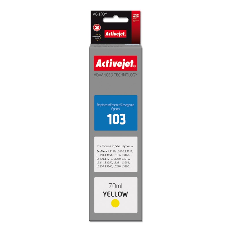Active Jet Συμβατό Μελάνι Εκτυπωτή InkJet Epson 103 C13T00S44A 70ml Κίτρινο (AE-103Y)