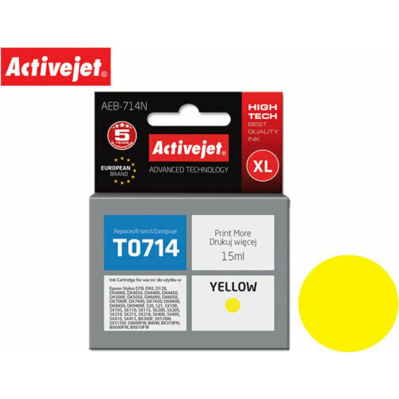 Active Jet Συμβατό Μελάνι Εκτυπωτή InkJet Epson T0714 15ml Κίτρινο (AEB-714N)