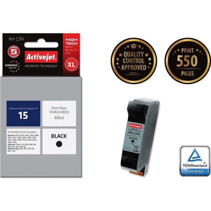 Active Jet Συμβατό Μελάνι Εκτυπωτή InkJet HP 15 C6615N 44ml Μαύρο (AH-15N)