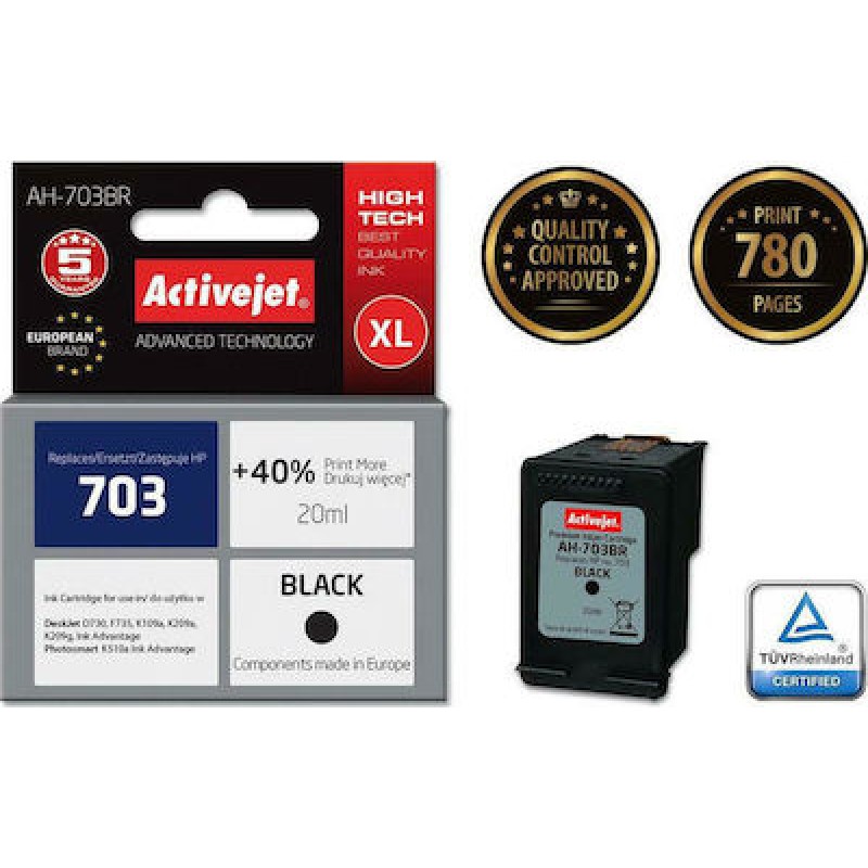 Active Jet Συμβατό Μελάνι Εκτυπωτή InkJet HP 703 CD887AE 840 Σελίδων 20ml Μαύρο (AH-703BR)
