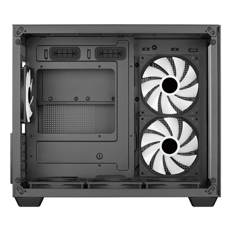 | Υποστηριζόμενοι ανεμιστήρες (μέγιστοι) | Πλευρικοί: 2 (120/140 mm), Πίσω: 1 (120 mm), Πάνω: 3 (120/140 mm), Κάτω: 3 (120 mm) |