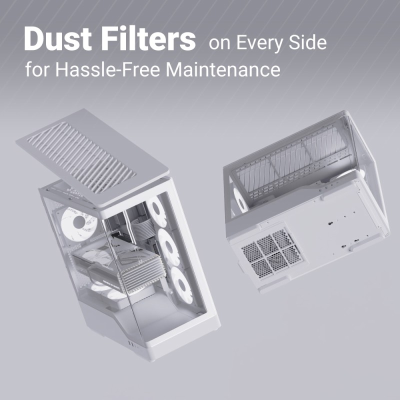 Τα προϊόντα που δεν αναγράφουν διαθέσιμο σημαίνει ότι δεν υπάρχουν άμεσα διαθέσιμα στο κατάστημα και θα παραληφθούν το αργότερο εντός των εργάσιμων ημερών που αναγράφεται στη διαθεσιμότητα. Σε κάθε περίπτωση η ημερομηνία μπορεί να μεταβληθεί και θα υπάρχει σχετική ενημέρωσή σας.Το Midi Tower κουτί είναι σχεδιασμένο για gaming και προσφέρει ευελιξία και άνεση στην εγκατάσταση διαφόρων μητρικών πλακών όπως ATX, micro ATX και Mini-ITX. Κατασκευασμένο από SPCC και tempered glass, διαθέτει λευκό χρώμα και ενσωματωμένο φωτισμό πολλαπλών χρωμάτων στα ανεμιστηράκια του. Υποστηρίζει έως 7 θέσεις επέκτασης και διαθέτει φίλτρο κατά της σκόνης, καθώς και διαχείριση καλωδίων για καθαρή εμφάνιση. Το μέγιστο ύψος ψύκτρας CPU είναι 18 cm και το μέγιστο μήκος κάρτας γραφικών 42 cm. Υποστηρίζει υδρόψυξη με ραδιέιτορες έως 360 mm στο πάνω μέρος και διαθέτει προεγκατεστημένους 4 ανεμιστήρες 120 mm (3 μπροστά και 1 πίσω).