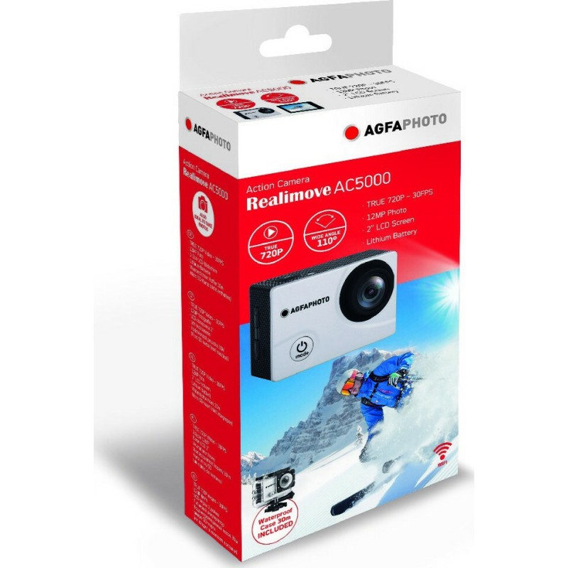Φωτογραφική Μηχανή Agfa Action Cam AC5000 Γκρι Wi-Fi με Ανάλυση 1080. Διαθέτει οθόνη με δυνατότητα προβολής γωνίας θέασης 140°, σύνδεση μέσω WiFi ενώ μπορεί να κάνει λήψεις σε απόσταση 30 μέτρων. Είναι επίσης αδιάβροχη για ακόμα πιο συναρπαστικές λήψεις.