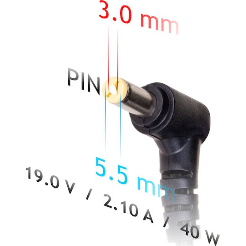 Akyga Φορτιστής Laptop 40W 19V 2.1A για Samsung χωρίς Καλώδιο Τροφοδοσίας (AK-ND-48)