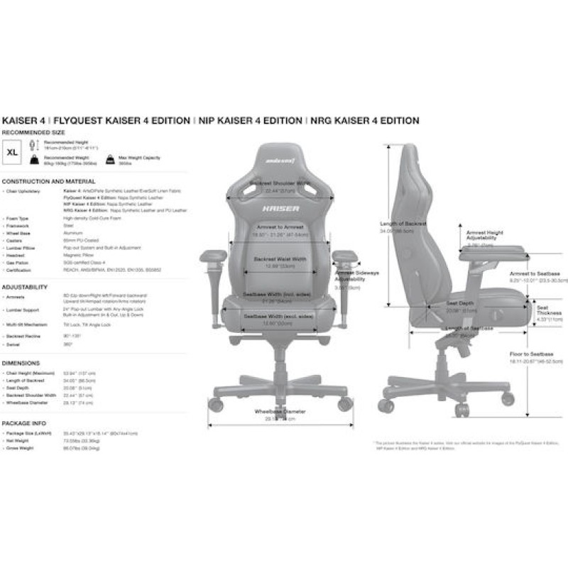 Η AndaSeat Kaiser 4 Linen Fabric είναι εργονομική καρέκλα gaming με υφασμάτινη επένδυση για άνεση και δροσερή αίσθηση. Διαθέτει ρυθμιζόμενη οσφυϊκή υποστήριξη, 6D μπράτσα, ανάκλιση έως 135° και στιβαρή μεταλλική βάση για μέγιστη υποστήριξη και σταθερότητα. Ιδανική για πολύωρη χρήση.