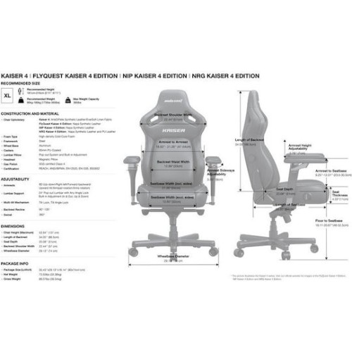 Η ANDA SEAT Kaiser 4 είναι μια premium καρέκλα gaming/εργασίας, σχεδιασμένη για απόλυτη άνεση και εργονομία. Διαθέτει ενσωματωμένη ρυθμιζόμενη οσφυϊκή υποστήριξη, μαγνητικό μαξιλάρι κεφαλής με memory foam, 6D βραχίονες και ανάκλιση έως 135°. Με ανθεκτική επένδυση PVC δέρματος και ενισχυμένη μεταλλική κατασκευή, είναι ιδανική για πολύωρη χρήση και χρήστες υψηλών απαιτήσεων.