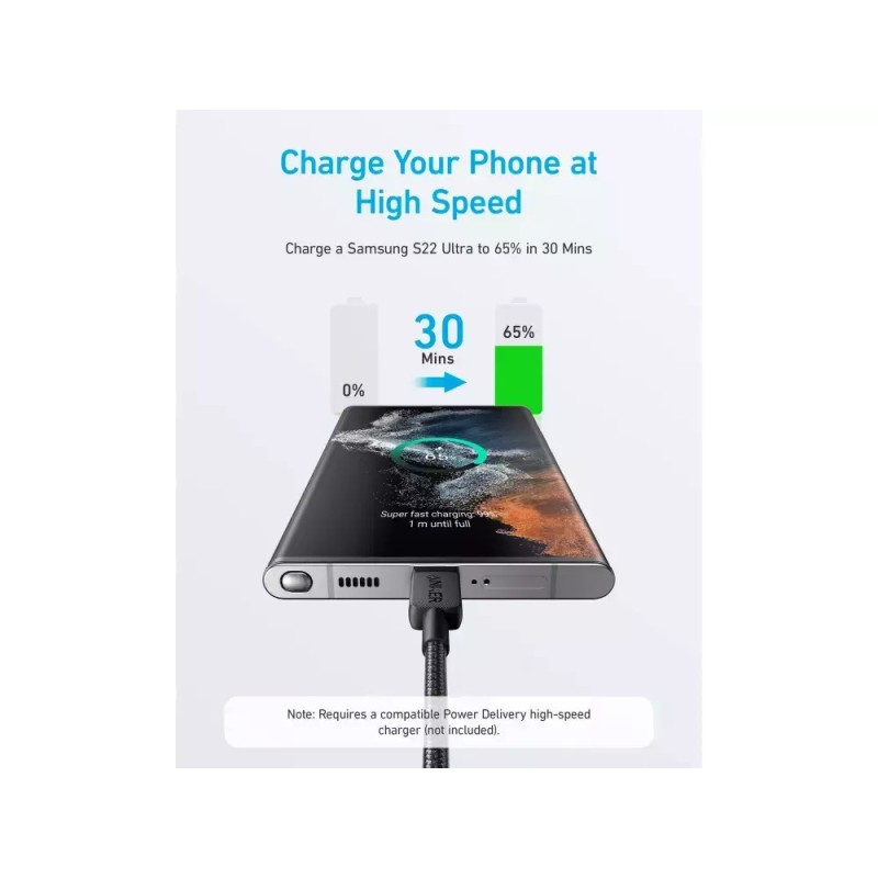 Anker 322 Braided USB 2.0 Cable USB-C male - USB-C Μαύρο 1.8m (A81F6G11) (A81F6G11)