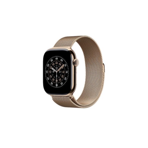 Το Apple Watch Milanese Loop Gold Band με κωδικό MGJ54ZM/A είναι αυθεντικό λουράκι τύπου Milanese Loop για Apple Watch σε χρυσό χρώμα (Gold). Πρόκειται για πλεγμένο μεταλλικό πλέγμα από ανοξείδωτο ατσάλι με μαγνητικό κλείσιμο, που επιτρέπει απλή και πλήρως ρυθμιζόμενη εφαρμογή στον καρπό. Το λουράκι M/L είναι κατάλληλο για καρπούς με περίμετρο περίπου 150–200 mm και συμβατό με μεγάλες κάσες Apple Watch 44 mm, 45 mm, 46 mm και 49 mm, προσφέροντας ένα κομψό, premium look για καθημερινή χρήση ή πιο επίσημες εμφανίσεις.