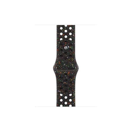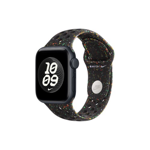 Το Apple Watch Nike Sport Band 40 mm 38/40/41 mm σε Midnight Black (μοντέλο MG9X4ZM/A) είναι αυθεντικό αθλητικό λουράκι Nike Sport Band της Apple για το Apple Watch. Είναι κατασκευασμένο από fluoroelastomer με πρεσαριστές οπές για καλύτερη αναπνοή, που το κάνει ανθεκτικό αλλά και μαλακό στο χέρι, προσφέροντας άνετη χρήση για καθημερινή δραστηριότητα και άθληση. Το λουράκι έχει κλείσιμο pin‑and‑tuck με το λογότυπο Nike Swoosh σε αλουμινένιο φινίρισμα και το σκούρο Midnight Black με πολύχρωμες λεπτομέρειες δίνει ένα διακριτικό αλλά σπορ look. Είναι S/M μέγεθος, κατάλληλο για καρπούς με περίμετρο περίπου 130–180 mm, και συμβατό με κάσες Apple Watch 38 mm, 40 mm και 41 mm.