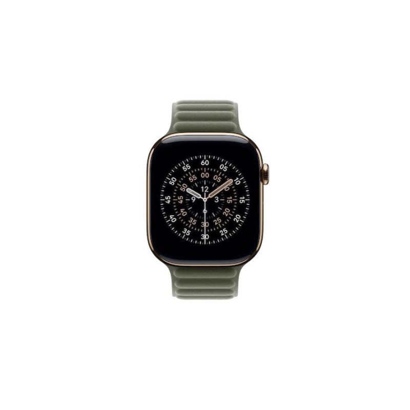Apple 46 mm Sage Gray Magnetic Link - M/L είναι ένα αυθεντικό λουράκι Magnetic Link για το Apple Watch σε απαλό γκρι‑πράσινο (Sage Gray) χρώμα, με M/L μέγεθος για καρπούς περίπου 165 – 205 mm περιμέτρου. Είναι κατασκευασμένο από ανθεκτικό micro‑twill FineWoven ύφασμα με μαγνητικό κλείσιμο, που τυλίγεται γύρω από τον καρπό και προσφέρει άνετη και σταθερή εφαρμογή όλη μέρα χωρίς κουμπώματα. Το λουράκι είναι συμβατό με κάσες Apple Watch 44 mm, 45 mm, 46 mm και 49 mm, καθιστώντας το ιδανικό για μεγάλο εύρος μοντέλων, συμπεριλαμβανομένων των Ultra και των Series με μεγάλες κασες.