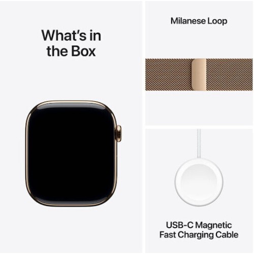 Apple Watch Series 11 Cellular Titanium 46mm Αδιάβροχο με eSIM και Παλμογράφο (Gold Titanium Case with Gold Milanese Loop - S/M) (MFD74ZR/A)