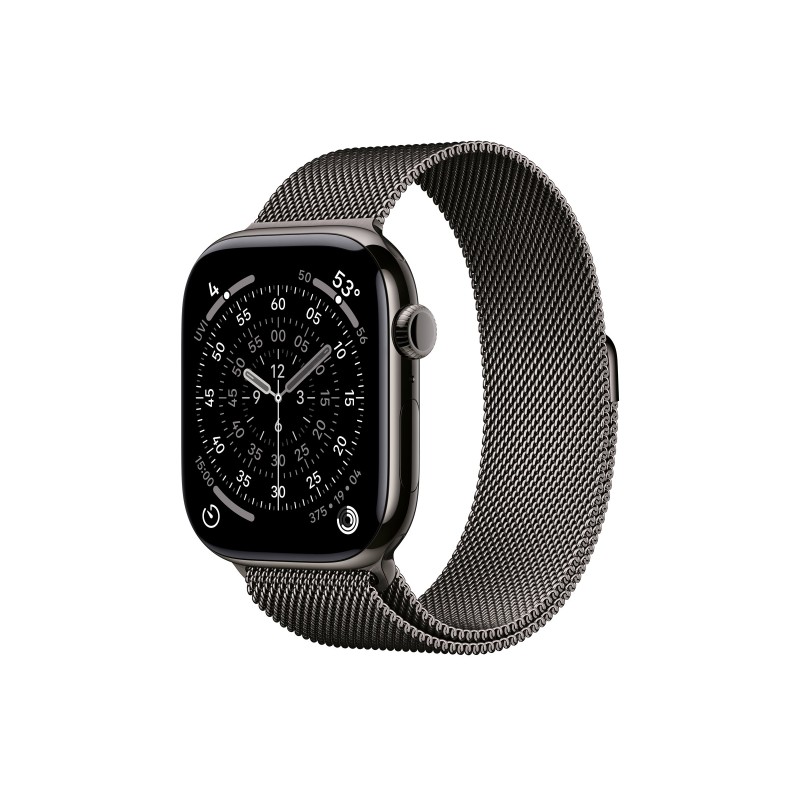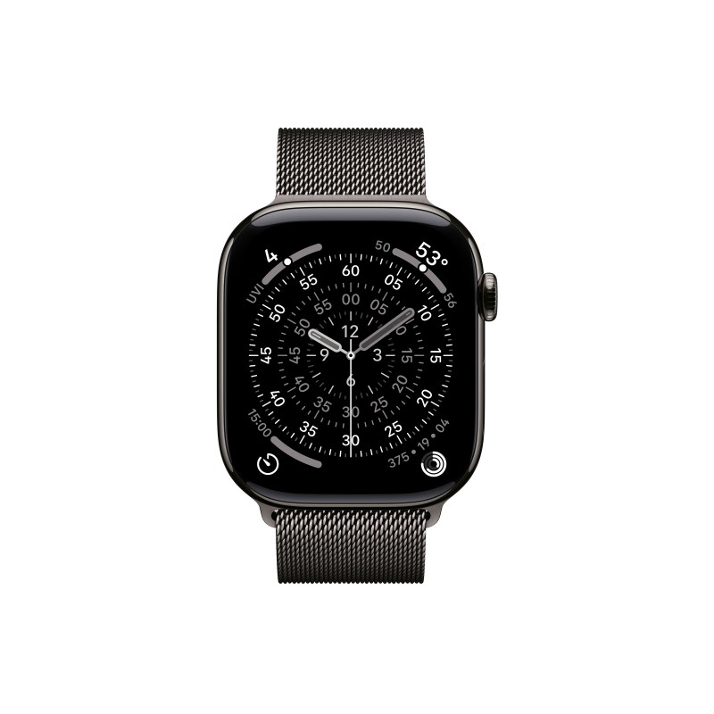Τα προϊόντα που δεν αναγράφουν διαθέσιμο σημαίνει ότι δεν υπάρχουν άμεσα διαθέσιμα στο κατάστημα και θα παραληφθούν το αργότερο εντός των εργάσιμων ημερών που αναγράφεται στη διαθεσιμότητα. Σε κάθε περίπτωση η ημερομηνία μπορεί να μεταβληθεί και θα υπάρχει σχετική ενημέρωσή σας.Το Apple Watch είναι ένα προηγμένο smartwatch με θήκη από τιτάνιο και μπρασελέ από ανοξείδωτο ατσάλι, σχεδιασμένο για να προσφέρει αντοχή και κομψότητα. Διαθέτει ορθογώνια ψηφιακή οθόνη OLED Retina 1,96 ιντσών με ανάλυση 416 x 496 pixels και φωτεινότητα 2000 cd/m², που εξασφαλίζει καθαρή και ζωντανή εικόνα ακόμα και σε έντονο φως. Υποστηρίζει ασύρματη φόρτιση και έχει διάρκεια μπαταρίας έως 38 ώρες. Είναι αδιάβροχο έως 50 μέτρα και ανθεκτικό στη σκόνη με πιστοποίηση IP6X. Ενσωματώνει πολλαπλούς αισθητήρες υγείας και φυσικής κατάστασης, όπως ηλεκτρικό και οπτικό αισθητήρα καρδιακού ρυθμού, αισθητήρα οξυγόνου αίματος, βαρόμετρο, γυροσκόπιο και επιταχυνσιόμετρο, ενώ υποστηρίζει λειτουργίες όπως ανίχνευση πτώσης, ανίχνευση άπνοιας ύπνου και ειδοποιήσεις ακανόνιστου καρδιακού ρυθμού. Διαθέτει επίσης ενσωματωμένο μικρόφωνο και ηχείο, υποστήριξη 5G, Wi-Fi 4, Bluetooth 5.3 και NFC για ανέπαφες πληρωμές. Λειτουργεί με το watchOS 11 και είναι συμβατό μόνο με iOS συσκευές. Το smartwatch προσφέρει πλούσιες λειτουργίες παρακολούθησης αθλημάτων και δραστηριοτήτων, καθώς και φωνητικό βοηθό Siri για εύκολη διαχείριση εντολών και ειδοποιήσεων.