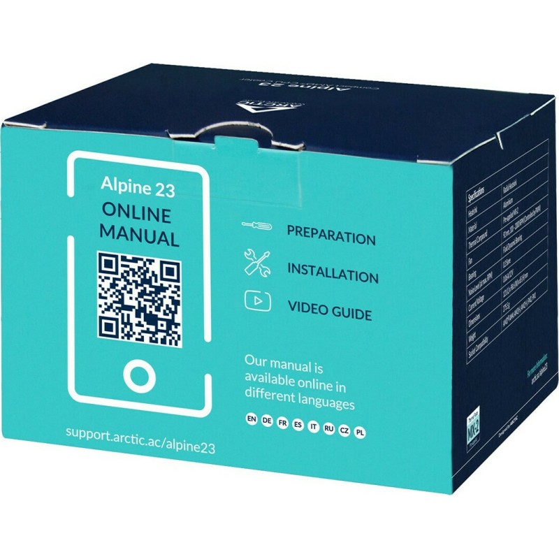 Χάρη στην κυκλική ψύκτρα και τον καλό σχεδιασμό του ανεμιστήρα, η Alpine 23 προσφέρει μεγάλη απόδοση σε πολύ χαμηλή τιμή. Διαθέτει μια νέα τεχνολογία κινητήρων με πολύ μεγάλο εύρος και ελεγχόμενου από PWM, RPM. Έτσι, το επίπεδο θορύβου διατηρείται στο ελάχιστο, ενώ διασφαλίζεται η μέγιστη απόδοση ψύξης όταν χρειάζεται. Τροφοδοτείται από ένα Updated Motor και λειτουργεί πολύ πιο αποτελεσματικά από τους προκατόχους του με ελάχιστους κραδασμούς. Χάρη στα mounting clips, η εγκατάσταση είναι πραγματικά εύκολη. Δεν απαιτούνται πρόσθετα εργαλεία για την εγκατάσταση της ψύκτρας. Η προεφαρμοσμένη, υψηλής απόδοσης MX-2 Thermal Paste εξασφαλίζει γρήγορη και καθαρή εγκατάσταση.