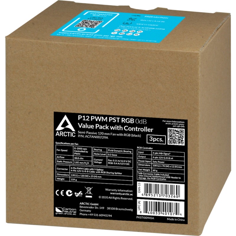 Arctic P12 PWM PST RGB Case Fan 120mm 4-Pin 3τμχ (ACFAN00229A)