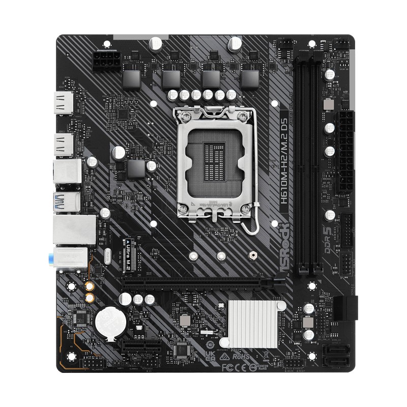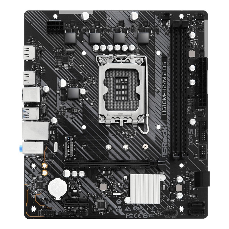 Τα προϊόντα που δεν αναγράφουν διαθέσιμο σημαίνει ότι δεν υπάρχουν άμεσα διαθέσιμα στο κατάστημα και θα παραληφθούν το αργότερο εντός των εργάσιμων ημερών που αναγράφεται στη διαθεσιμότητα. Σε κάθε περίπτωση η ημερομηνία μπορεί να μεταβληθεί και θα υπάρχει σχετική ενημέρωσή σας.Η μητρική κάρτα Micro ATX με chipset Intel H610 υποστηρίζει επεξεργαστές Intel της γενιάς Alder Lake με socket LGA 1700. Διαθέτει 2 DIMM υποδοχές μνήμης DDR5, υποστηρίζοντας έως 96 GB σε dual-channel λειτουργία με ταχύτητες που φτάνουν έως και 6400 MHz (OC). Η κάρτα είναι κατάλληλη για χρήση σε desktop υπολογιστές και προσφέρει πλούσιες δυνατότητες συνδεσιμότητας, όπως θύρες USB 3.2 και USB 2.0, 4 θύρες SATA III, μία υποδοχή M.2 PCIe 3.0 για SSD, καθώς και ενσωματωμένη κάρτα δικτύου Gigabit Ethernet Realtek 8111H. Υποστηρίζει ήχο 7.1 καναλιών και διαθέτει θύρες HDMI για σύνδεση οθόνης.