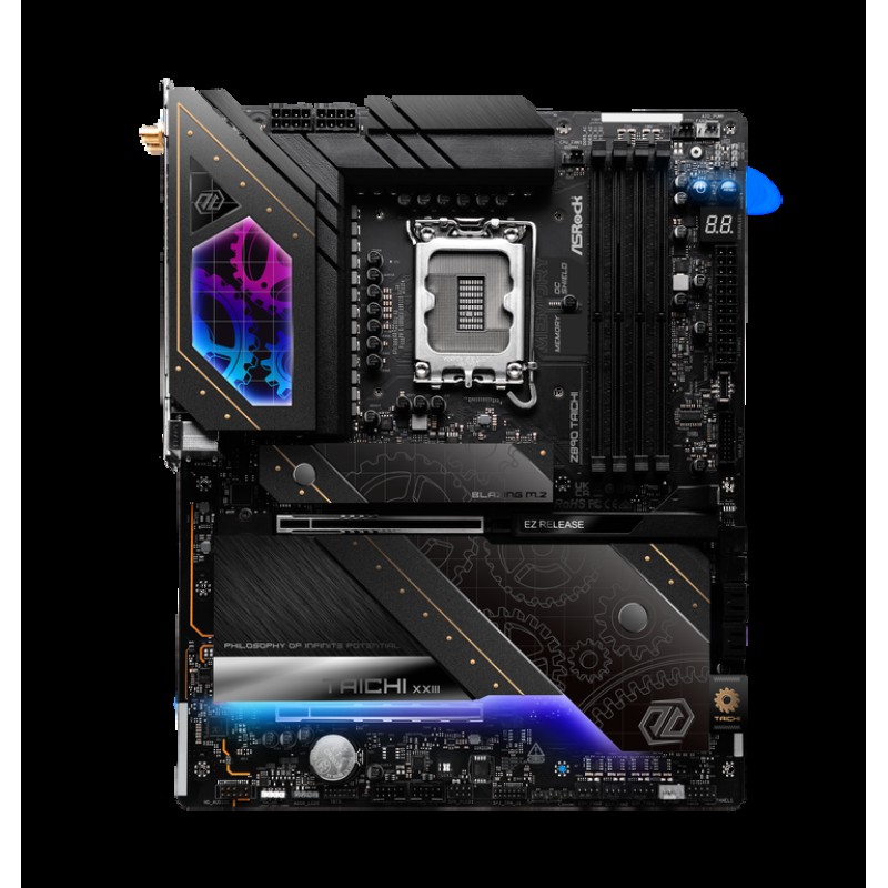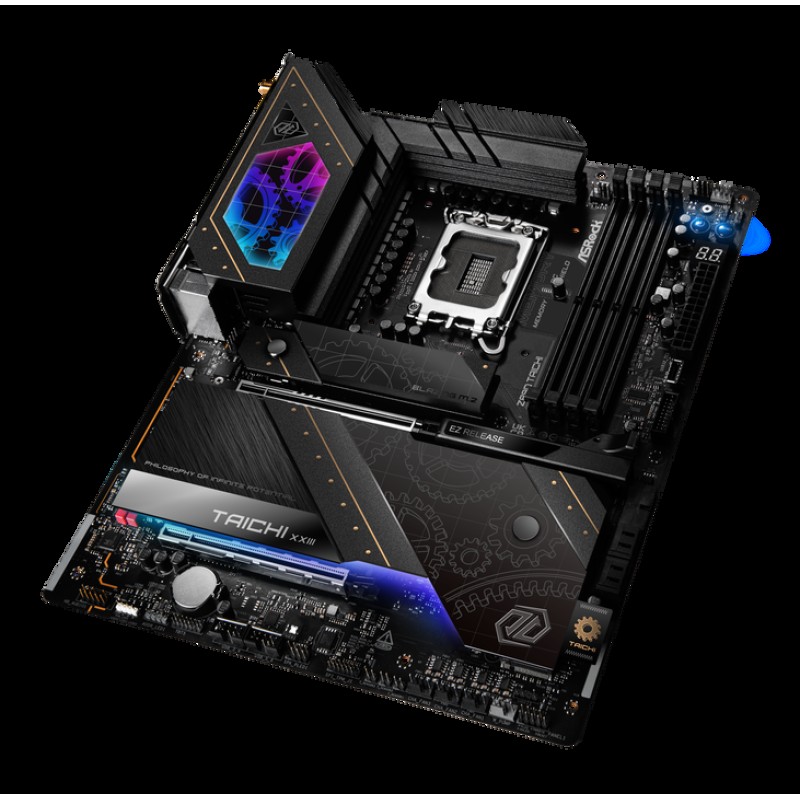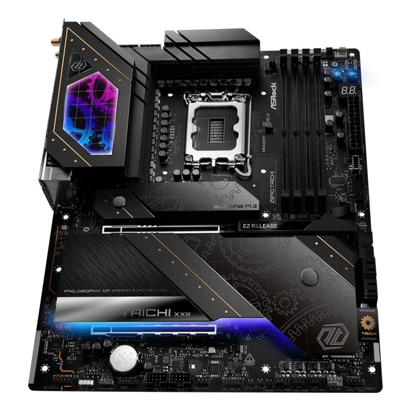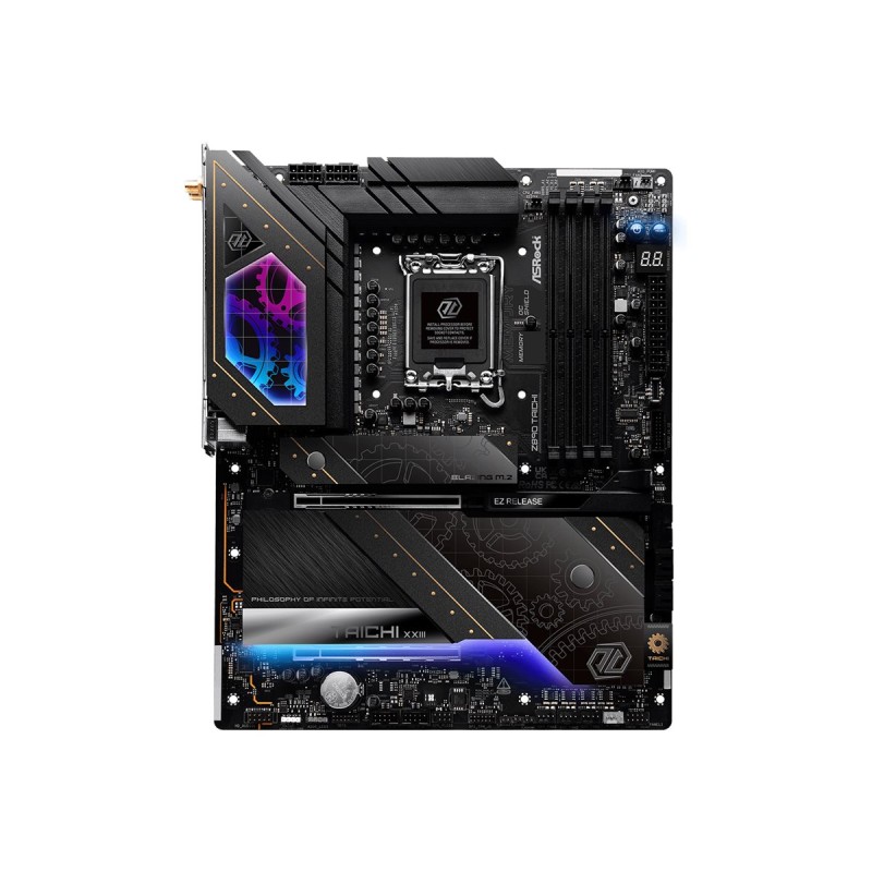 | Hardware Features | CUDIMM support, Nahimic Audio Enhancer, power/reset buttons, ASRock Dr. Debug, Clear CMOS Button, BIOS FlashBack, ASRock EZ Mode, ASRock Full HD UEFI, ASRock My Favorites in UEFI, ASRock Instant Flash, ASRock Auto Driver Installer, 8 Layer PCB, 2oz Copper PCB, Server-Grade Low-Loss PCB, 20+1+2+1+1 Phase Power Design, 20K black capacitors, ASRock Lightning Gaming Ports, Intel Adaptive Boost Technology, Intel Hybrid Technology, Intel Thermal Velocity Boost, Intel Turbo Boost Max Technology 3.0, Memory OC Shield, pre-mounted I/O shield, ASRock Hyper BCLK Engine, Enlarged Heatsink Armor, VRM heatsink design, Surface Mount Technology, EZ PCIe Release, Smart Power Stage technology, DIY Friendly Design, metal backplate, ASRock Polychrome RGB |