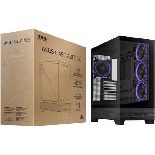Asus A31 PLUS Gaming Midi Tower Κουτί Υπολογιστή με Πλαϊνό Παράθυρο και ARGB Φωτισμό Μαύρο (90DC00R0-B19000)