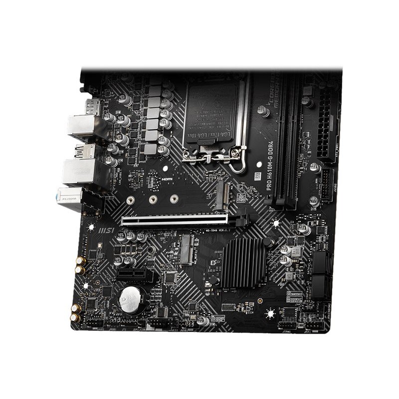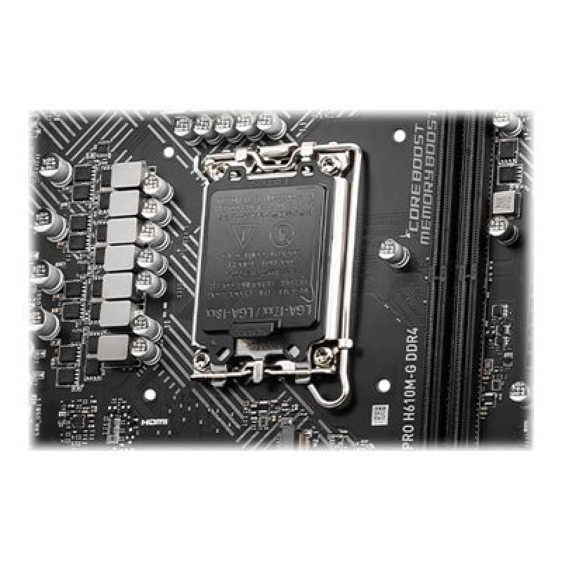 Τα προϊόντα που δεν αναγράφουν διαθέσιμο σημαίνει ότι δεν υπάρχουν άμεσα διαθέσιμα στο κατάστημα και θα παραληφθούν το αργότερο εντός των εργάσιμων ημερών που αναγράφεται στη διαθεσιμότητα. Σε κάθε περίπτωση η ημερομηνία μπορεί να μεταβληθεί και θα υπάρχει σχετική ενημέρωσή σας.Η μητρική πλακέτα τύπου micro ATX με chipset Intel H610 υποστηρίζει έναν επεξεργαστή με socket LGA1700, συμβατό με 12ης γενιάς Intel Core, Pentium Gold και Celeron. Υποστηρίζει έως 64 GB DDR4 μνήμης RAM με ταχύτητες 2133, 2666, 2933 και 3200 MHz σε dual channel αρχιτεκτονική. Διαθέτει πλήθος θυρών και επεκτάσεων, όπως PCIe 4.0 x16, M.2 για ασύρματα modules και PCIe 3.0 x1, καθώς και 4 θύρες SATA-600 για αποθήκευση. Ο ήχος είναι 8-καναλικός HD Audio με codec Realtek ALC892/ALC897, ενώ η δικτύωση γίνεται μέσω Gigabit Ethernet με τον ελεγκτή Intel I219V. Η μητρική διαθέτει επίσης HDMI, VGA, DisplayPort, USB 3.2 Gen 1 και USB 2.0 θύρες, καθώς και εσωτερικές headers για USB και ήχο. Επιπλέον, υποστηρίζει τεχνολογίες όπως MSI ClickBIOS 5, Core Boost και Audio Boost, με ενισχυμένη προστασία ESD και Steel Armor για αντοχή.