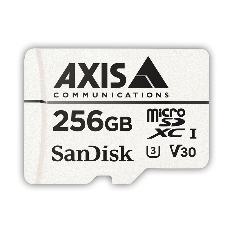 microSDXC κάρτα μνήμης της εταιρίας Axis. Διαθέτει χωρητικότητα 256GB. Το μέγεθος αυτό είναι ικανό να υποστηρίξει μεγάλο όγκο φωτογραφιών, αρκετά παιχνίδια αν προορίζεται για κονσόλα, για πολύωρη καταγραφή σε action cams, drones κ.α.