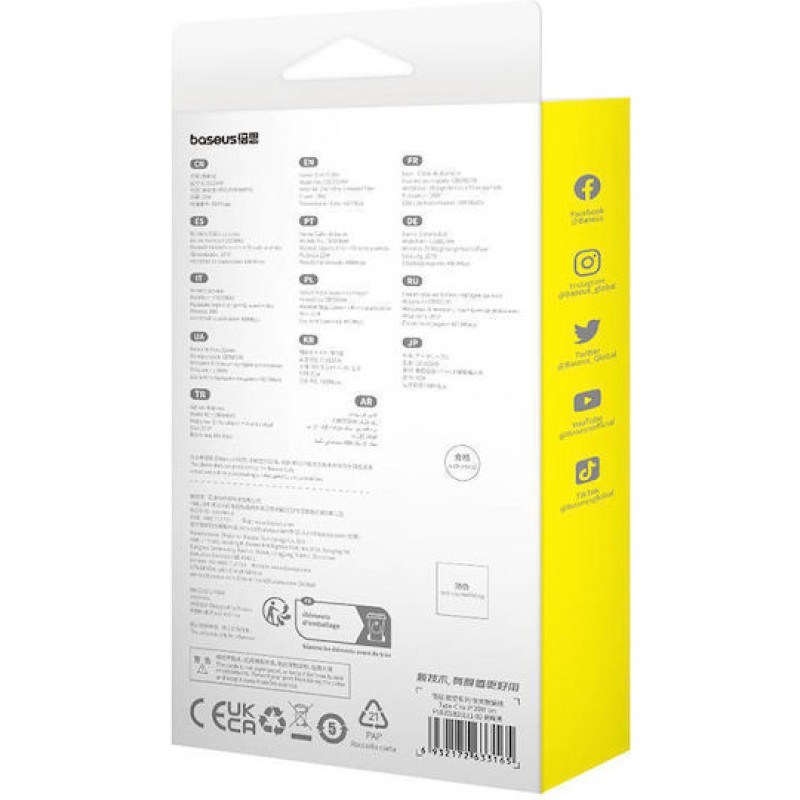 Baseus Aramid Braided USB-C to Lightning Cable 20W Μαύρο 1m (P10355803111-00) (P10355803111-00)