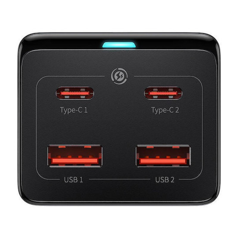 Baseus Βάση Φόρτισης GaN με 2 Θύρες USB-A και 2 Θύρες USB-C 100W Quick Charge 4.0 σε Μαύρο χρώμα (CCGAN100-1ACE) (CCGAN100-1ACE)