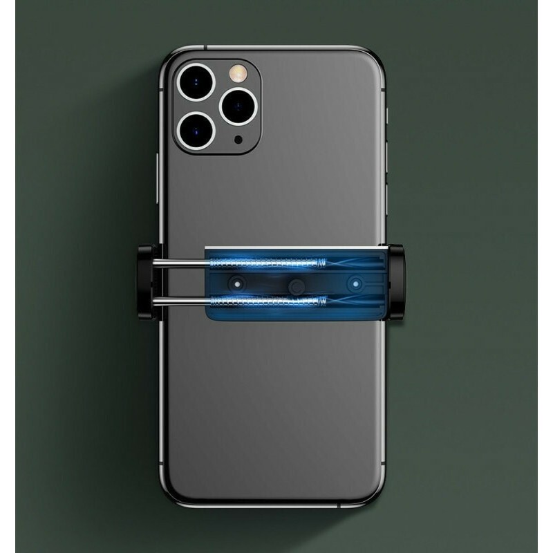 • Ασφαλίζει το smartphone με έναν έξυπνο μηχανισμό συγκράτησης ο οποίος λειτουργεί με την πίεση δύο πτερύγιων
