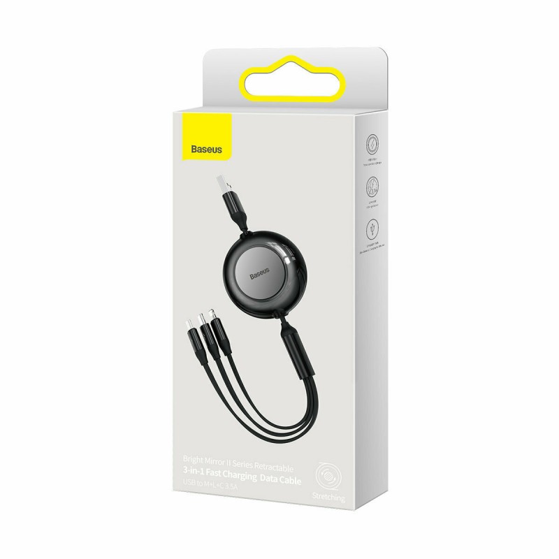 Baseus Bright Mirror 2 Flat / Retractable USB to Type-C / micro USB / Lightning Cable 3.5A Μαύρο 1.1m (CAMJ010001) (CAMJ010001)