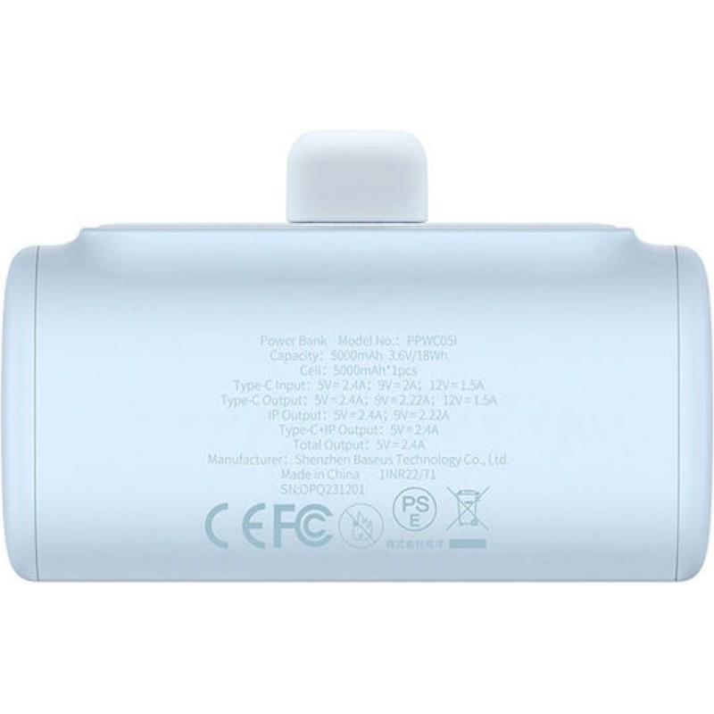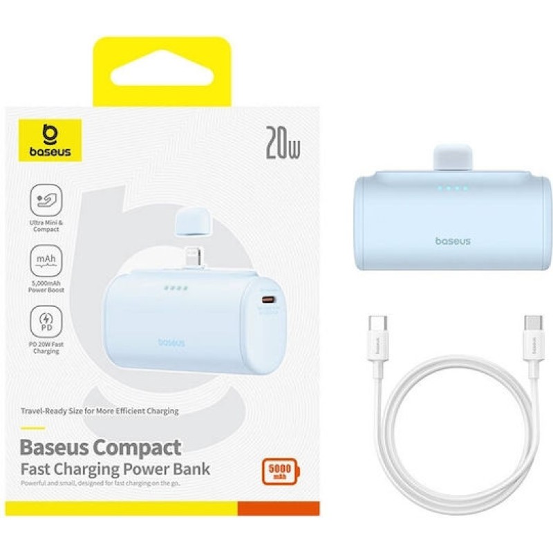 Baseus Compact Lightning Edition Power Bank 5000mAh 20W με Θύρα USB-C Μπλε (P10068307313-00)