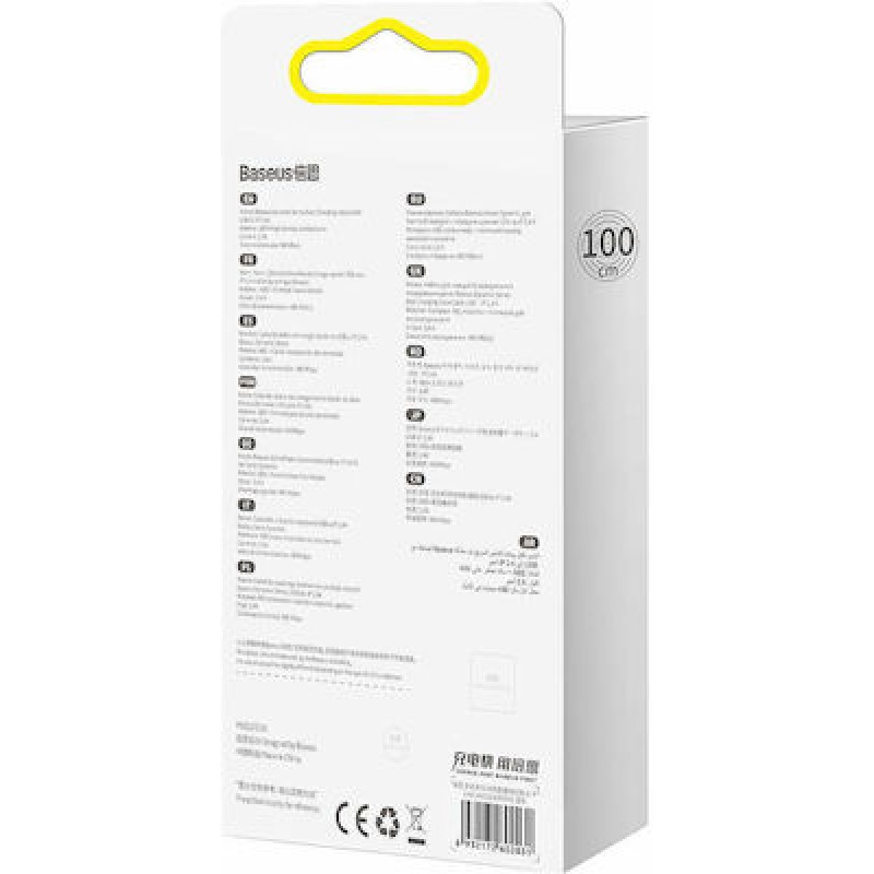 Lightning καλώδιο της εταιρίας Baseus που συνδέει την Apple συσκευή με υποδοχή Lightning στη θύρα USB A.
