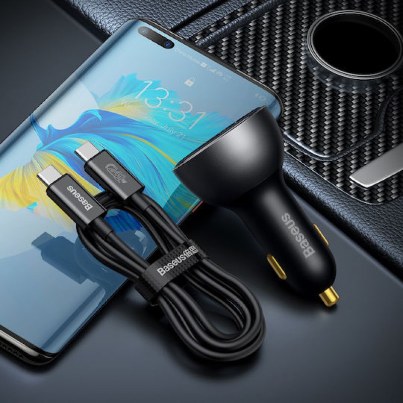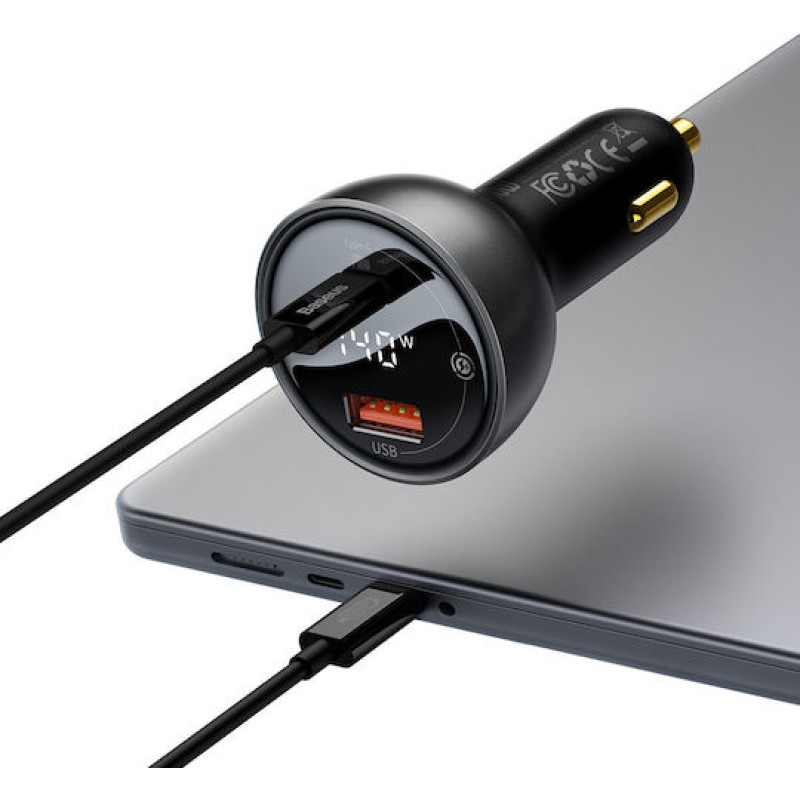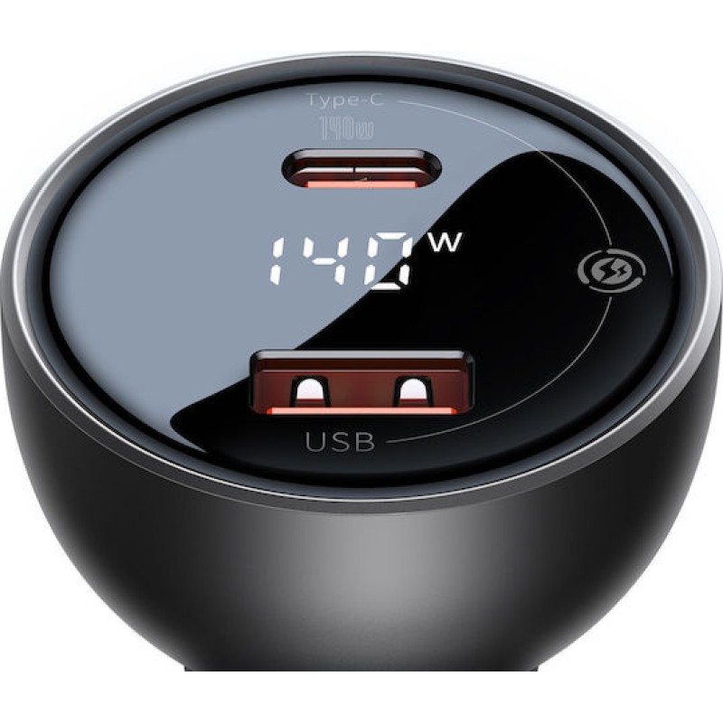 Baseus Φορτιστής Αυτοκινήτου 140W 5A Γρήγορης Φόρτισης με Θύρες: 1xUSB 1xType-C και Βολτόμετρο Μαύρο Χρώμα (CGZX070001)
