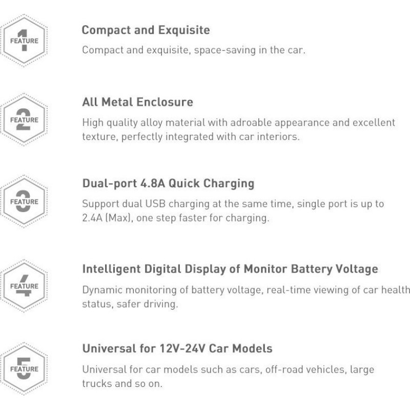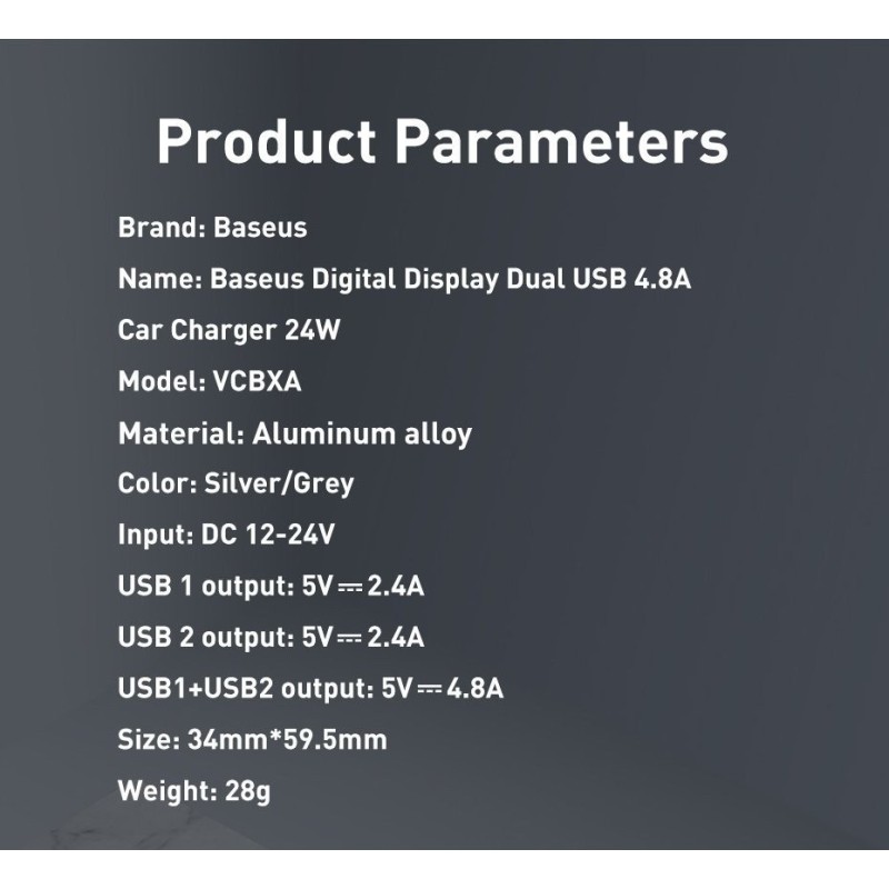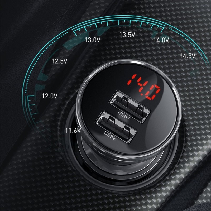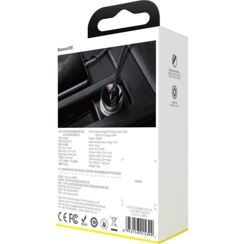 Baseus Φορτιστής Αυτοκινήτου Γκρι CCBX-0G 4.8A με Θύρες: 2xUSB και Βολτόμετρο Μπαταρίας (CCBX-0G)