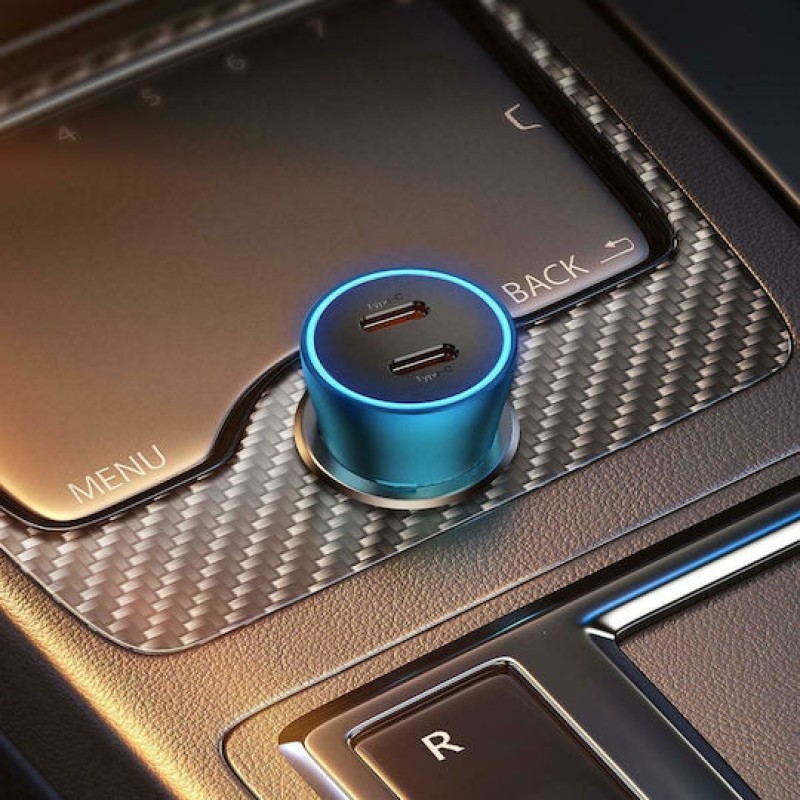Φορτιστής αυτοκινήτου από την Baseus, που εφαρμόζει άμεσα στη θέση του αναπτήρα ώστε να φορτίζετε τις συσκευές σας στο ταξίδι, την εκδρομή ή τη διαδρομή για τη δουλειά. Διαθέτει 2 θύρες USB-C για τη φόρτιση του tablet ή του smartphone σας. Η συνολική απόδοση του φορτιστή είναι 5 Ampere και σε συνδυασμό με την τεχνολογία Fast Charge, μπορείτε να φορτίζετε τις συσκευές σας πιο γρήγορα από έναν απλό φορτιστή.