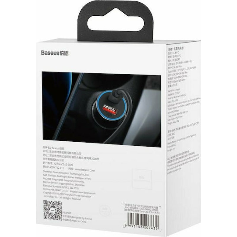 Τα προϊόντα που δεν αναγράφουν διαθέσιμο σημαίνει ότι δεν υπάρχουν άμεσα διαθέσιμα στο κατάστημα και θα παραληφθούν το αργότερο εντός των εργάσιμων ημερών που αναγράφεται στη διαθεσιμότητα. Σε κάθε περίπτωση η ημερομηνία μπορεί να μεταβληθεί και θα υπάρχει σχετική ενημέρωσή σας.Φορτιστής αυτοκινήτου από την Baseus, που εφαρμόζει άμεσα στη θέση του αναπτήρα ώστε να φορτίζετε τις συσκευές σας στο ταξίδι, την εκδρομή ή τη διαδρομή για τη δουλειά. Διαθέτει μία θύρα USB και μία θύρα USB-C για τη φόρτιση του tablet ή του smartphone σας. Ακόμη, με την τεχνολογία Fast Charge που τον χαρακτηρίζει, μπορείτε να φορτίζετε τις συσκευές σας πιο γρήγορα.