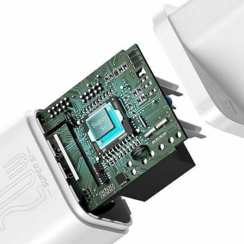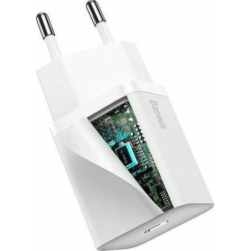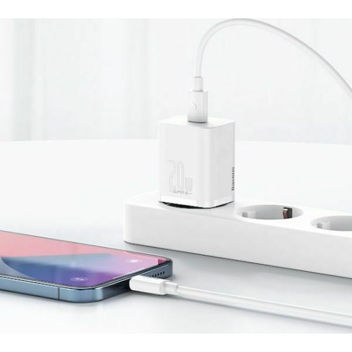 Baseus Φορτιστής με Θύρα USB-C και Καλώδιο USB-C - Lightning 20W Power Delivery Λευκός (Super Si) (TZCCSUP-B02)
