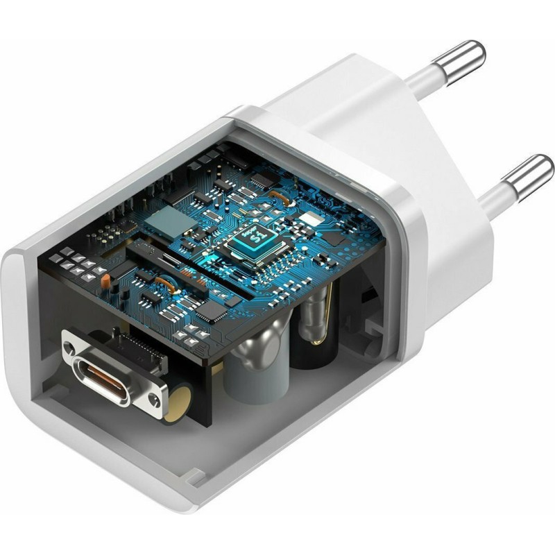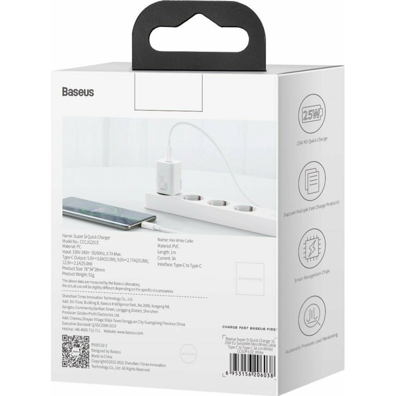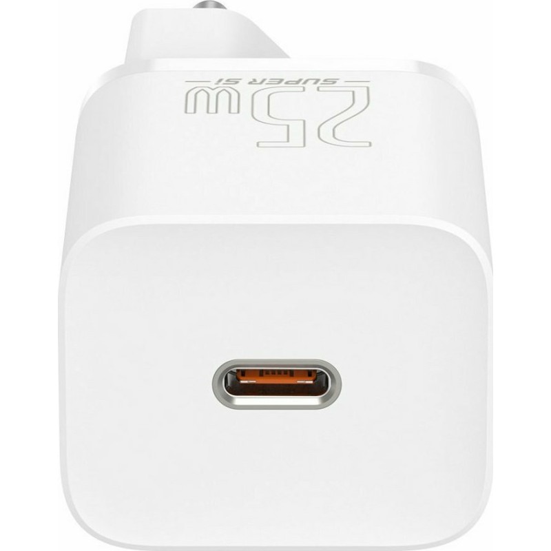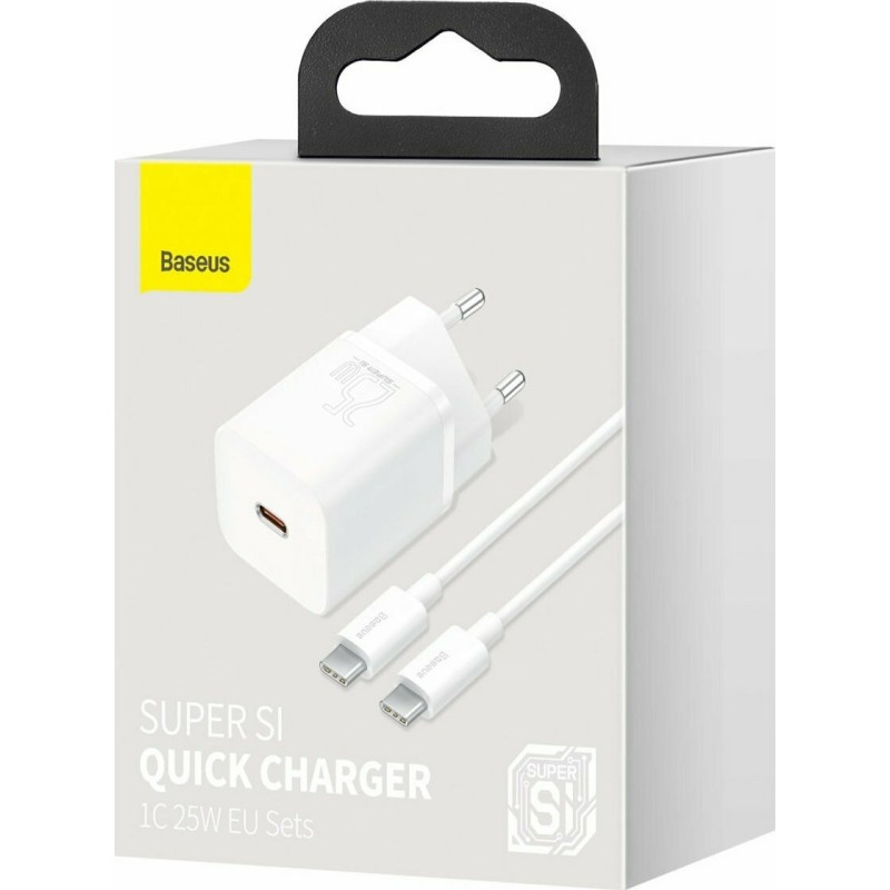 Baseus Φορτιστής με Θύρα USB-C και Καλώδιο USB-C - USB-C 25W Λευκός (Super Si) (TZCCSUP-L02)