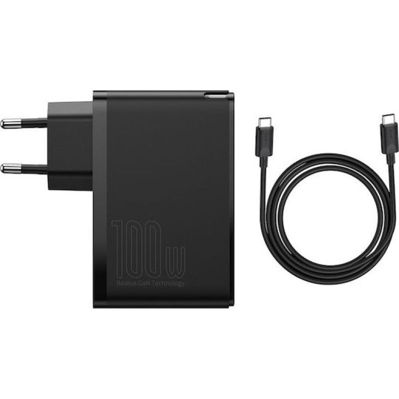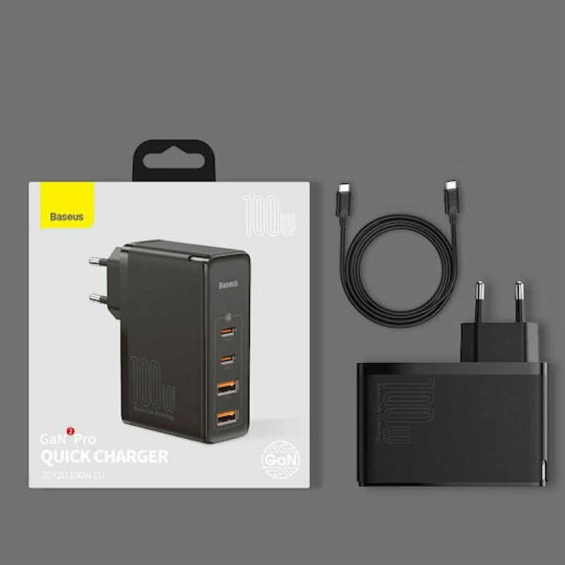 Baseus Φορτιστής Χωρίς Καλώδιο με 2 Θύρες USB-A και 2 Θύρες USB-C 100W Quick Charge 4+ Μαύρος (GaN2 Pro) (CCGAN2P-L01)