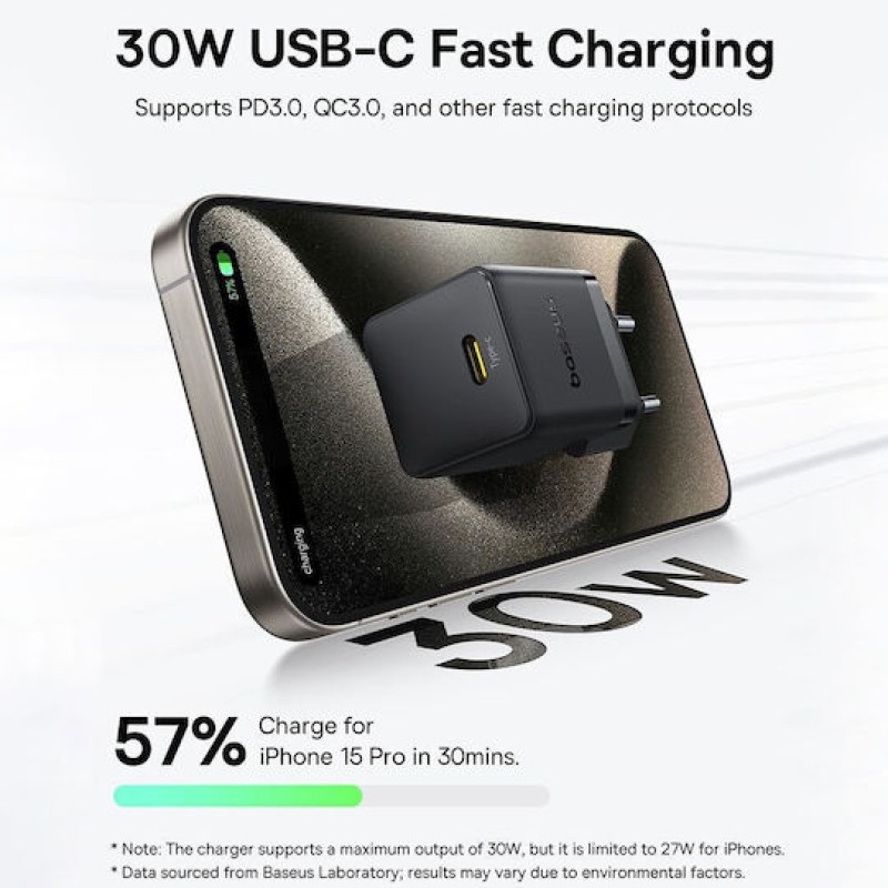Baseus Φορτιστής Χωρίς Καλώδιο με Θύρα USB-C 30W Power Delivery Μαύρος (Palm) (P10111605113-00)