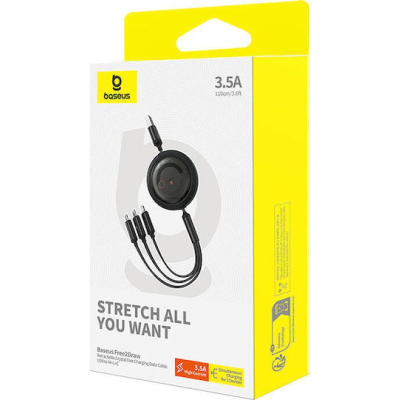 Baseus Free2draw Regular USB to Lightning / Type-C / micro USB Cable 3.5A Μαύρο 1.1m P10368700111-02 (P10368700111-02)