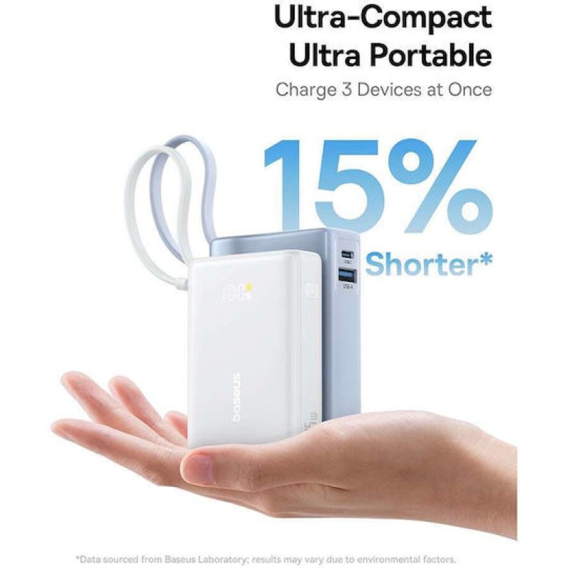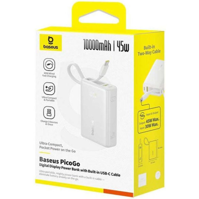 Baseus PicoGo Power Bank 10000mAh 45W με Θύρα USB-C Λευκό (P10076803213-00)