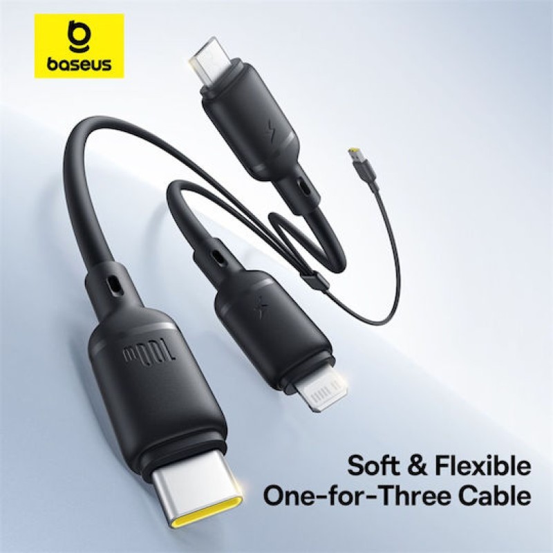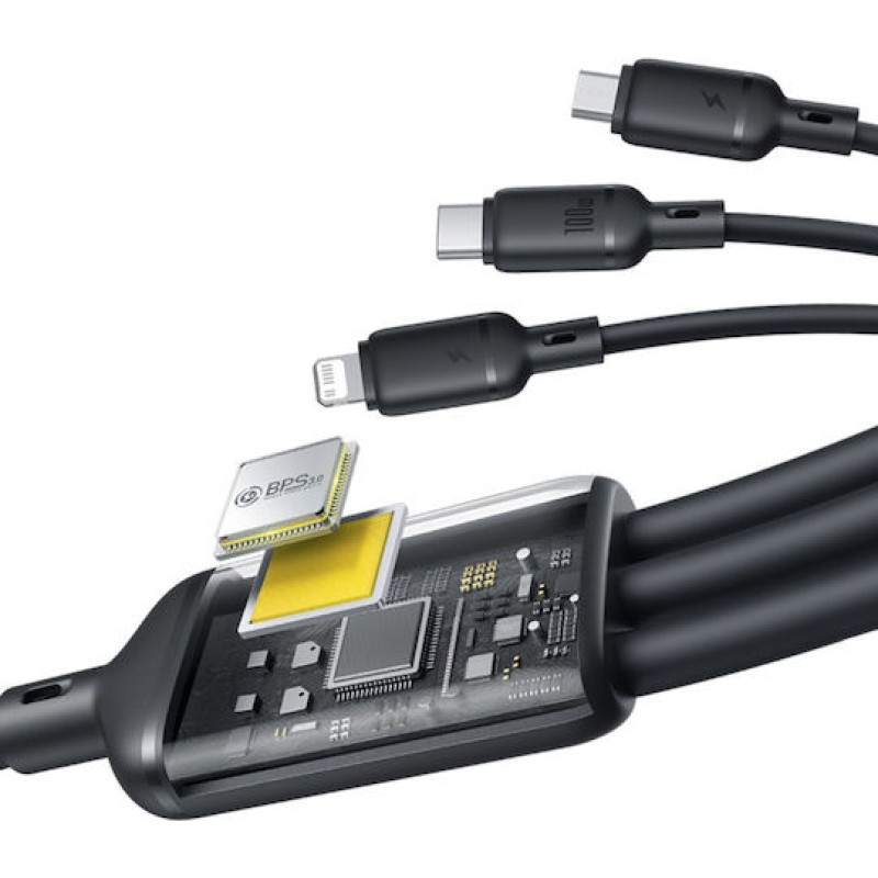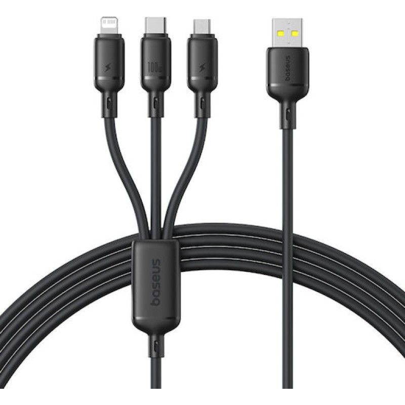 Baseus Rapid Series 3-in-1 USB to Cable 5A Μαύρο 1.5m P10377705123-00 (P10377705123-00)