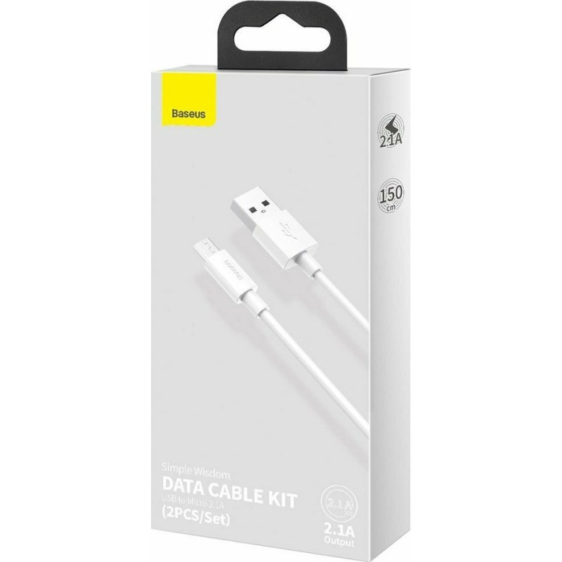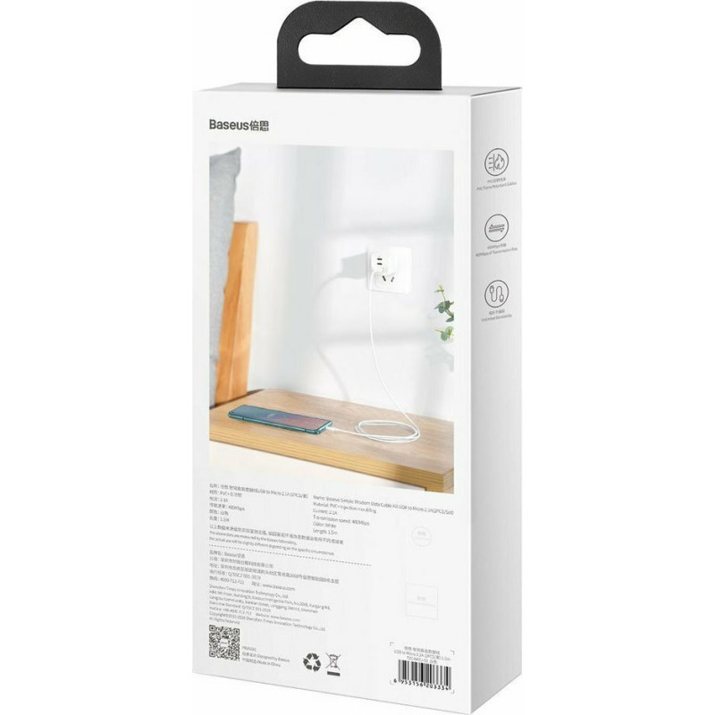 Baseus Simple Wisdom Regular USB 2.0 to micro USB Cable Λευκό 1.5m (TZCAMZJ-02) (TZCAMZJ-02)