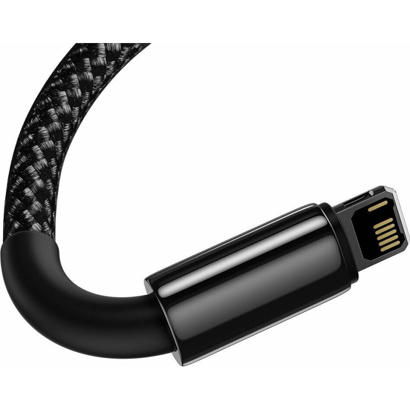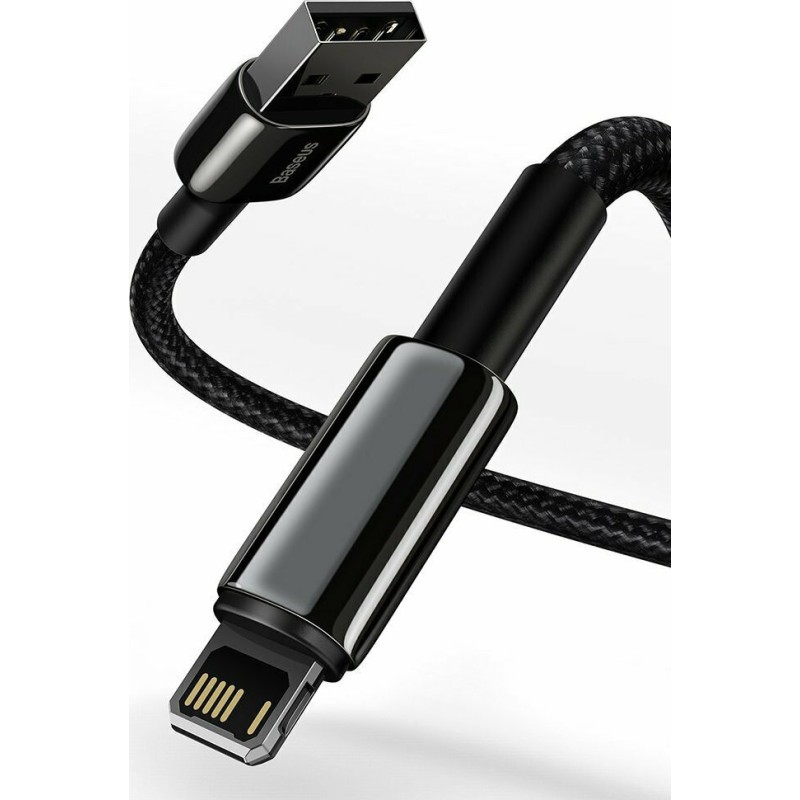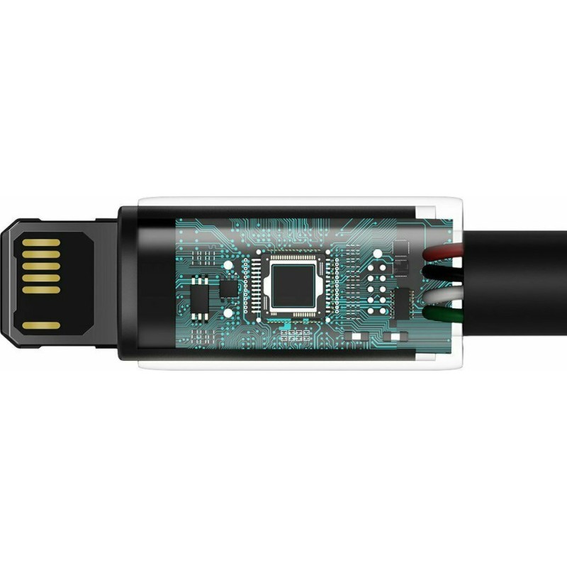 Lightning καλώδιο της εταιρίας Baseus που συνδέει την Apple συσκευή με υποδοχή Lightning στη θύρα USB του υπολογιστή ή του φορτιστή για συγχρονισμό και φόρτιση.