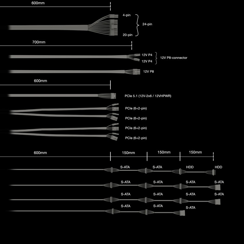| Μήκη καλωδίων SATA | 600, 750, 900, 1050 mm |