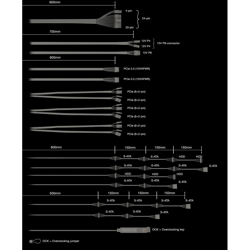 | Συνδέσεις Τροφοδοσίας | 1 x 24 pin ATX (με αποσπώμενο 4 pin), 1 x 4+4 pin, 1 x P8, 2 x 12VHPWR, 6 x 8 pin PCI Express (με αποσπώμενο 2 pin), 16 x 15 pin Serial ATA, 5 x Parallel ATA |